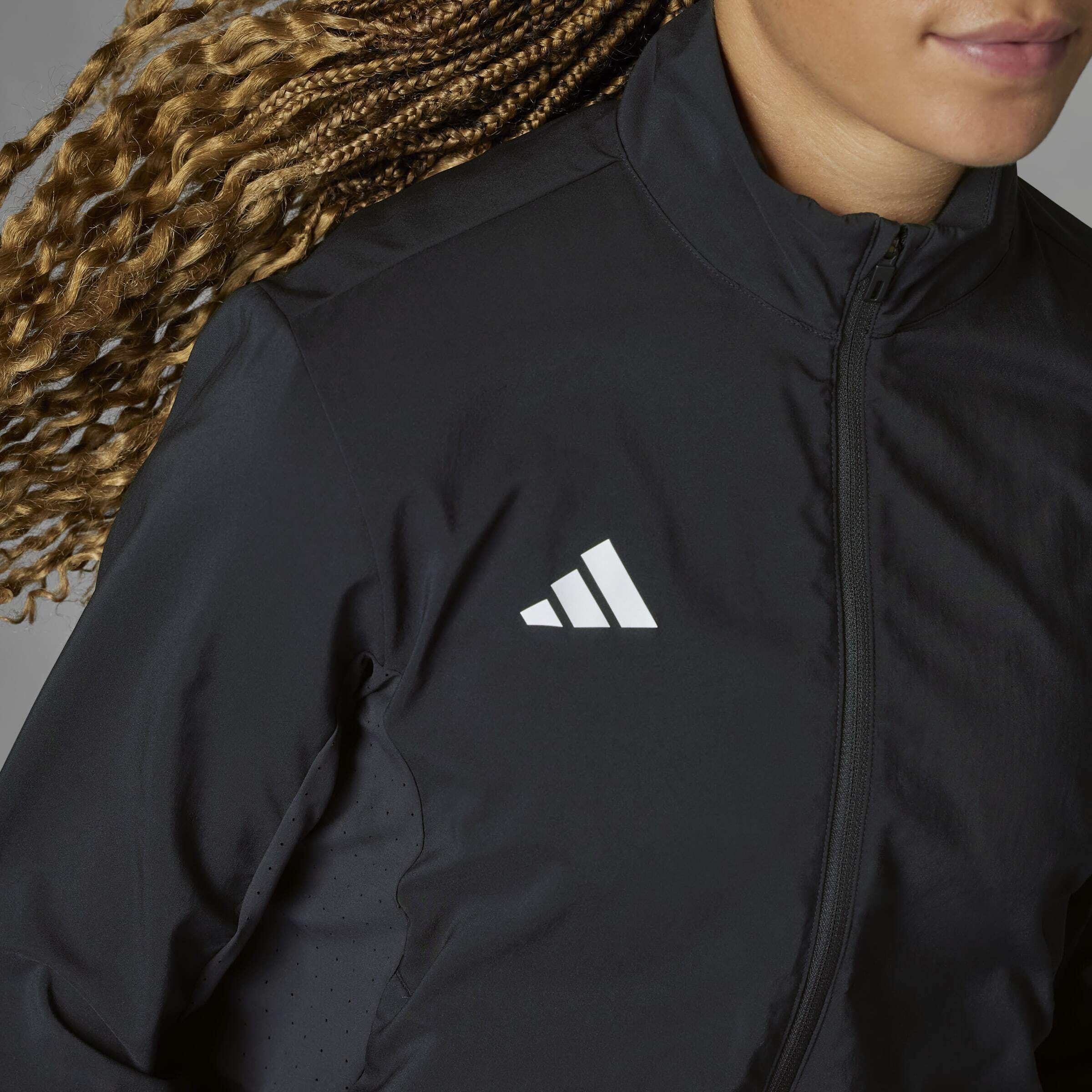 Adidas Adizero Essentials Siyah Kadın Eşofman Üstü, hafif yapısı ve teknik detaylarıyla performans odaklı tasarlanmış modern bir kadın eşofman üstü modelidir.Dar kesimi sayesinde vücuda oturan bir kullanım sunan bu Adidas kadın eşofman üstü, tam boy fermuarı ve dik yaka tasarımı ile ekstra koruma sağlar.%100 geri dönüştürülmüş polyester kumaşı ve su tutmaz DWR kaplaması ile dış etkenlere karşı dayanıklı olan Adidas Adizero kadın eşofman üstü, yoğun antrenmanlar için idealdir.Kol altındaki perfore paneller nefes alabilirliği artırırken, arkası hafif uzun tasarımı ile hareket sırasında ekstra konfor sunan bu kadın eşofman üstü, spor ve aktif yaşam için mükemmel bir tercihtir.