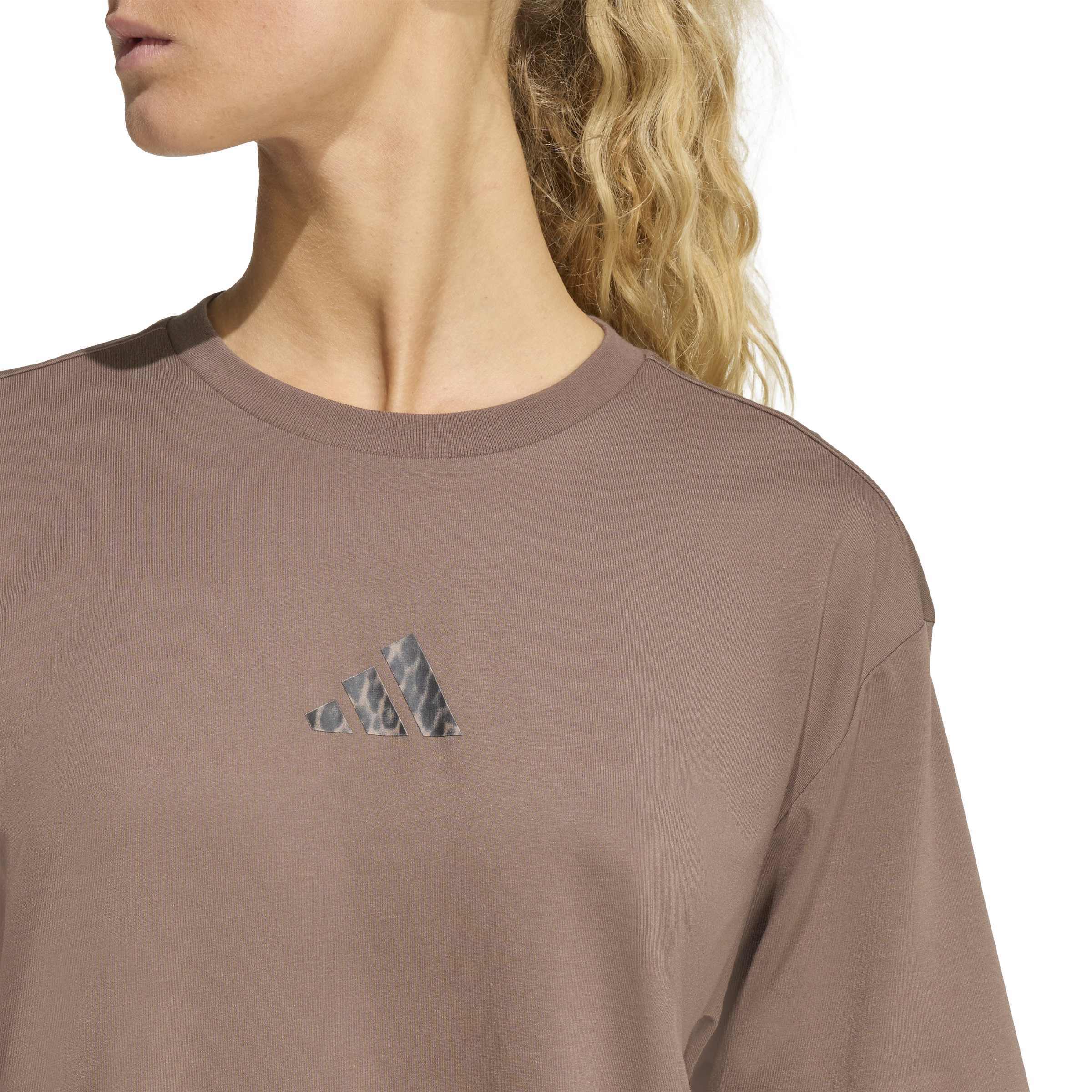 Stil ve performansın vahşi uyumu! Adidas Climacool Animal Training Graphic Kahverengi Kadın Tişört, CLIMACOOL teknolojisi ile serinlik vadederken, leopar baskılı logosuyla fark yaratıyor. Geniş kesimi ve pamuklu süprem dokusuyla hem sporda hem de sokakta özgürce hareket edin.