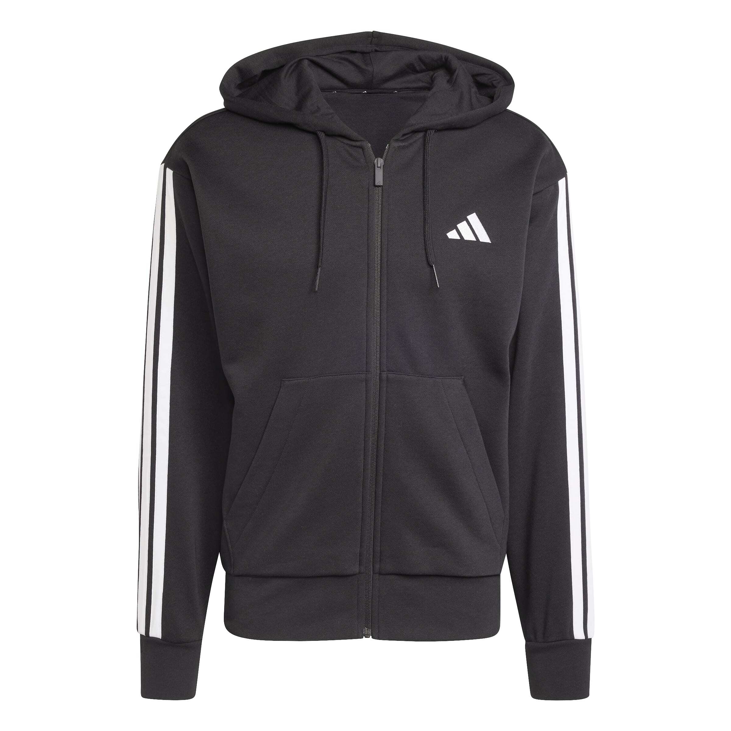 Adidas Essentials 3-Stripes Fleece Siyah Erkek Sweatshirt, günlük konforu ve sportif tarzı bir arada sunan modern bir erkek sweatshirt modelidir.Normal kesimli yapısı ve düşük omuz detayı sayesinde rahat bir kullanım sağlayan bu Adidas erkek sweatshirt, fleece kumaşı ile soğuk havalarda sıcak tutar.Geri dönüştürülmüş içerik barındıran pamuk karışımlı kumaşı ile hem yumuşak hem de dayanıklı olan Adidas Essentials erkek sweatshirt, çevre dostu yapısıyla öne çıkar.Bağcıklı kapüşonu, tam boy fermuarlı tasarımı ve kanguru cepleriyle fonksiyonel bir kullanım sunan bu erkek sweatshirt, spor ve günlük kombinler için ideal bir tercihtir.