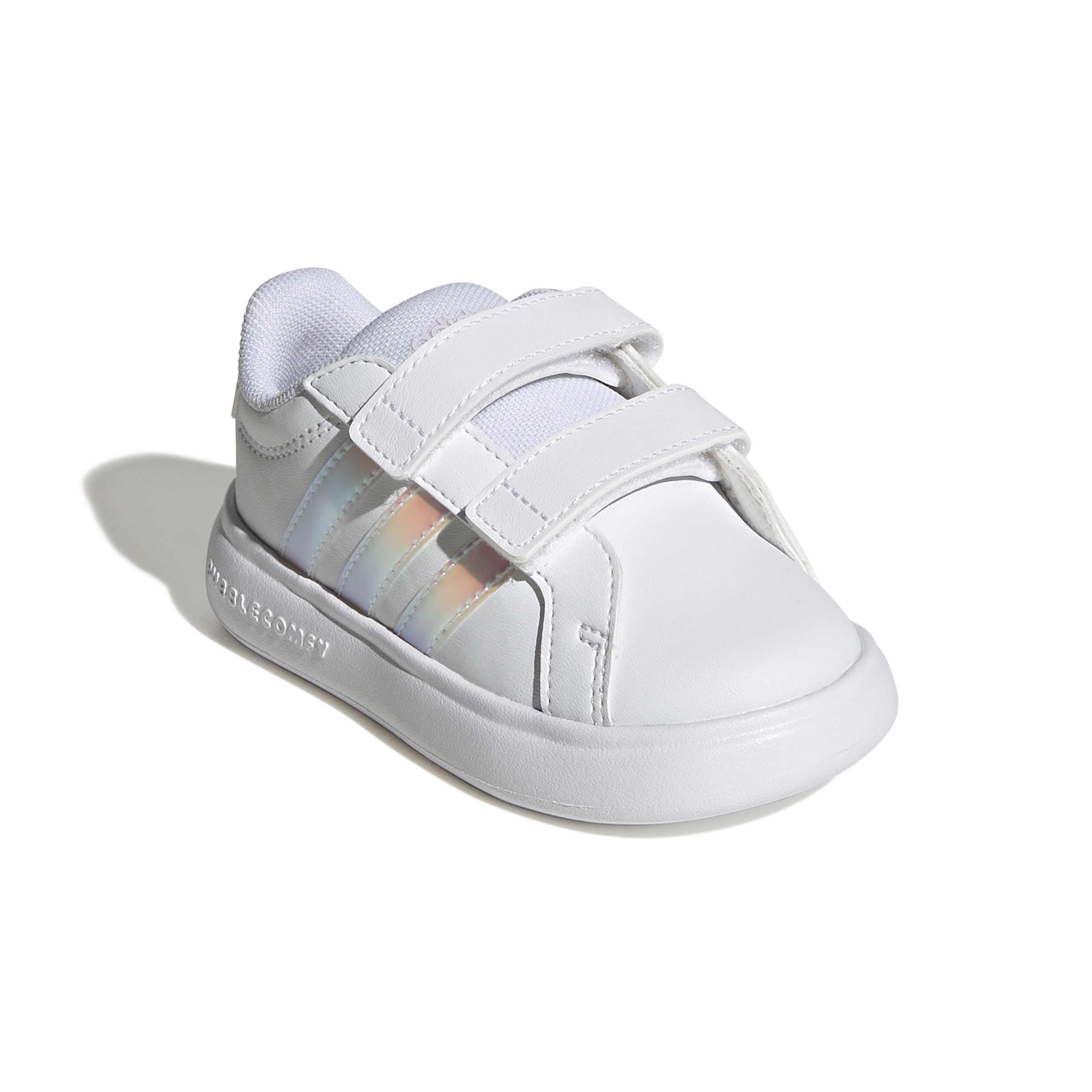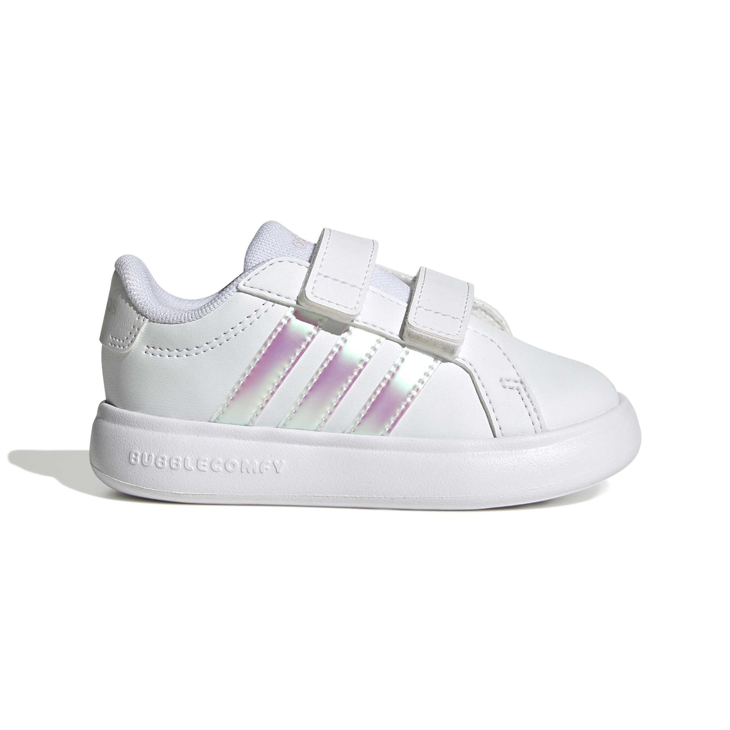 Klasik stil, maksimum hafiflikle buluştu! Adidas Grand Court 3.0 Bubble CF Beyaz Çocuk Günlük Ayakkabı, tek parça EVA tabanı sayesinde çocuklara tüy kadar hafif bir deneyim sunuyor. Cırt cırtlı bantları ile kullanım kolaylığı sağlayan bu model, miniklerin stilini ve konforunu bir üst seviyeye taşıyor.