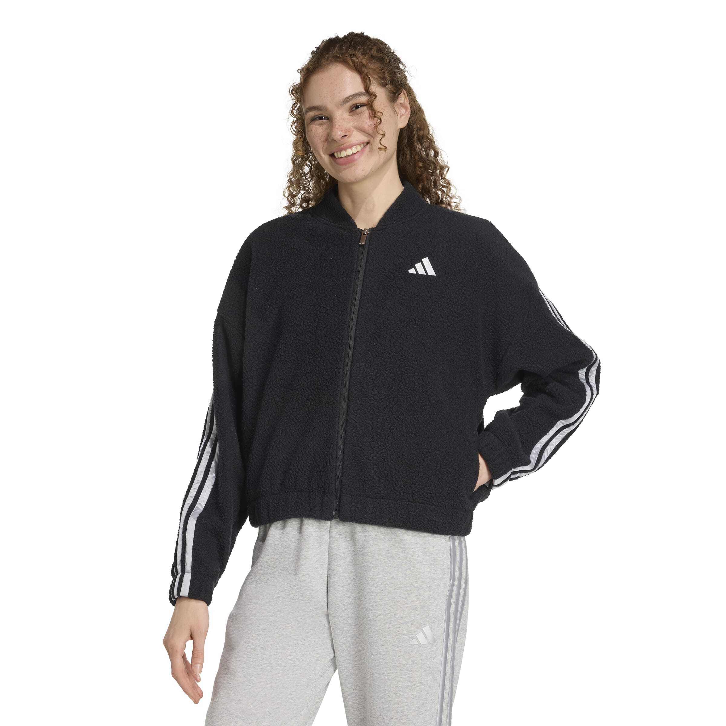 Adidas Holiday High Pile Fleece Full-Zip Siyah Kadın Sweatshirt, soğuk havalarda maksimum sıcaklık ve konfor sunan şık bir kadın sweatshirt modelidir. Yumuşak high pile fleece dokusu sayesinde sıcak tutan bu Adidas kadın sweatshirt, bol kesimi ile gün boyu rahat bir kullanım sağlar. Fermuarlı tasarımı sayesinde pratik kullanım sunan Adidas Holiday kadın sweatshirt, günlük kombinlerde ve spor şıklığında ideal bir tercihtir. Geri dönüştürülmüş polyesterden üretilen bu kadın sweatshirt, çevre dostu yapısı ile de öne çıkar.