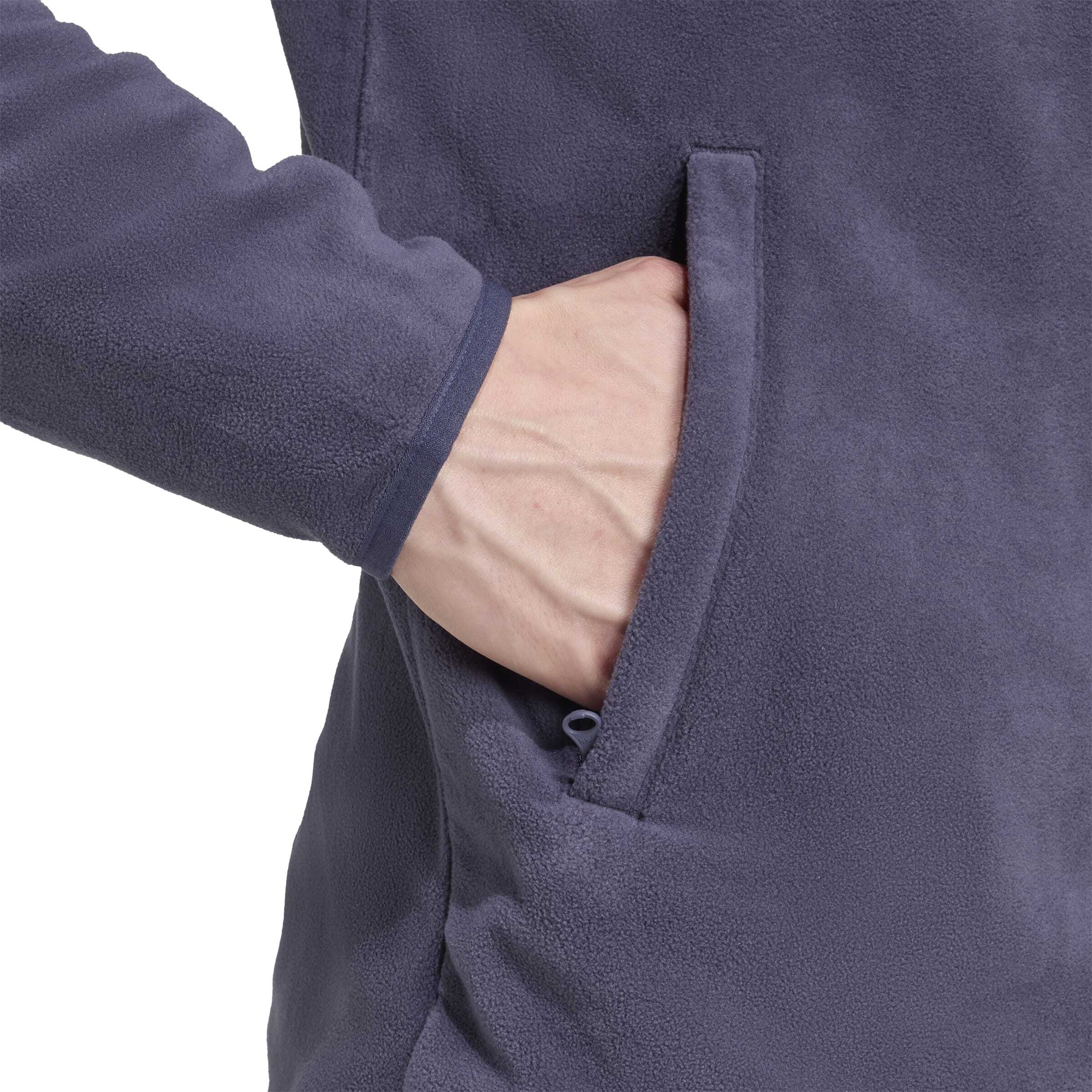 Bu adidas tam fermuarlı fleece ceket, açık hava maceraları için çok yönlü bir katmandır ve soğuk başlangıçlı günlerde veya yüksek rakımlarda ekstra sıcaklık sağlar. Fırçalanmış polar fleece, ciltle temas ettiğinde ekstra yumuşak bir his sunar.