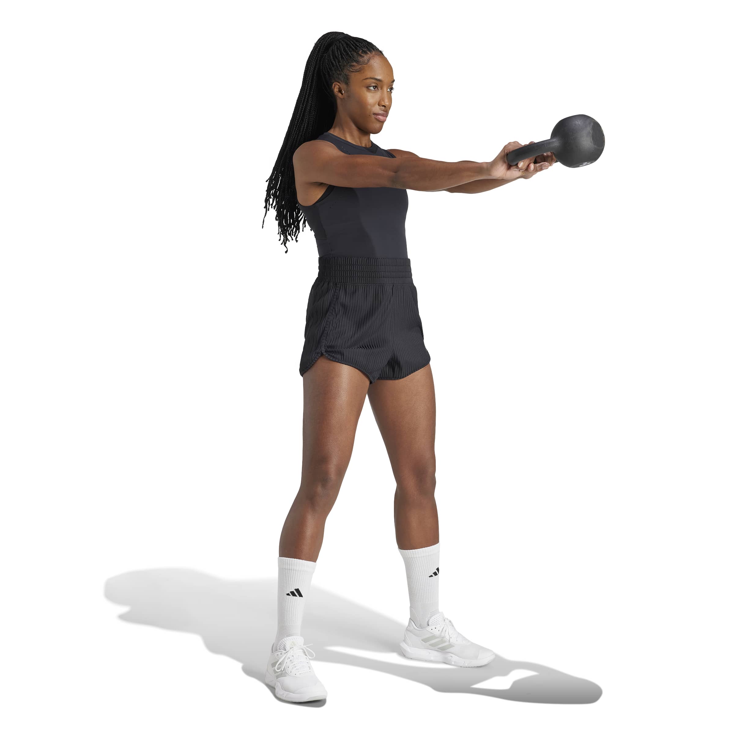 Adidas Pacer All Gym Seasonal Rib High-Rise Tonal 3-Stripes Kadın Şort, her antrenmanda size destek olacak yüksek belli bir training şortudur. Bu Adidas kadın şort, yumuşak ribana örgü kumaşı ve yüksek bel bandı ile squat, lunge ve diğer egzersizler sırasında hafif destek ve koruma sağlar. Yan yırtmaçları sayesinde hareket özgürlüğünüzü kısıtlamaz ve adidas AEROREADY teknolojisi ile antrenman boyunca kuru kalmanıza yardımcı olur.