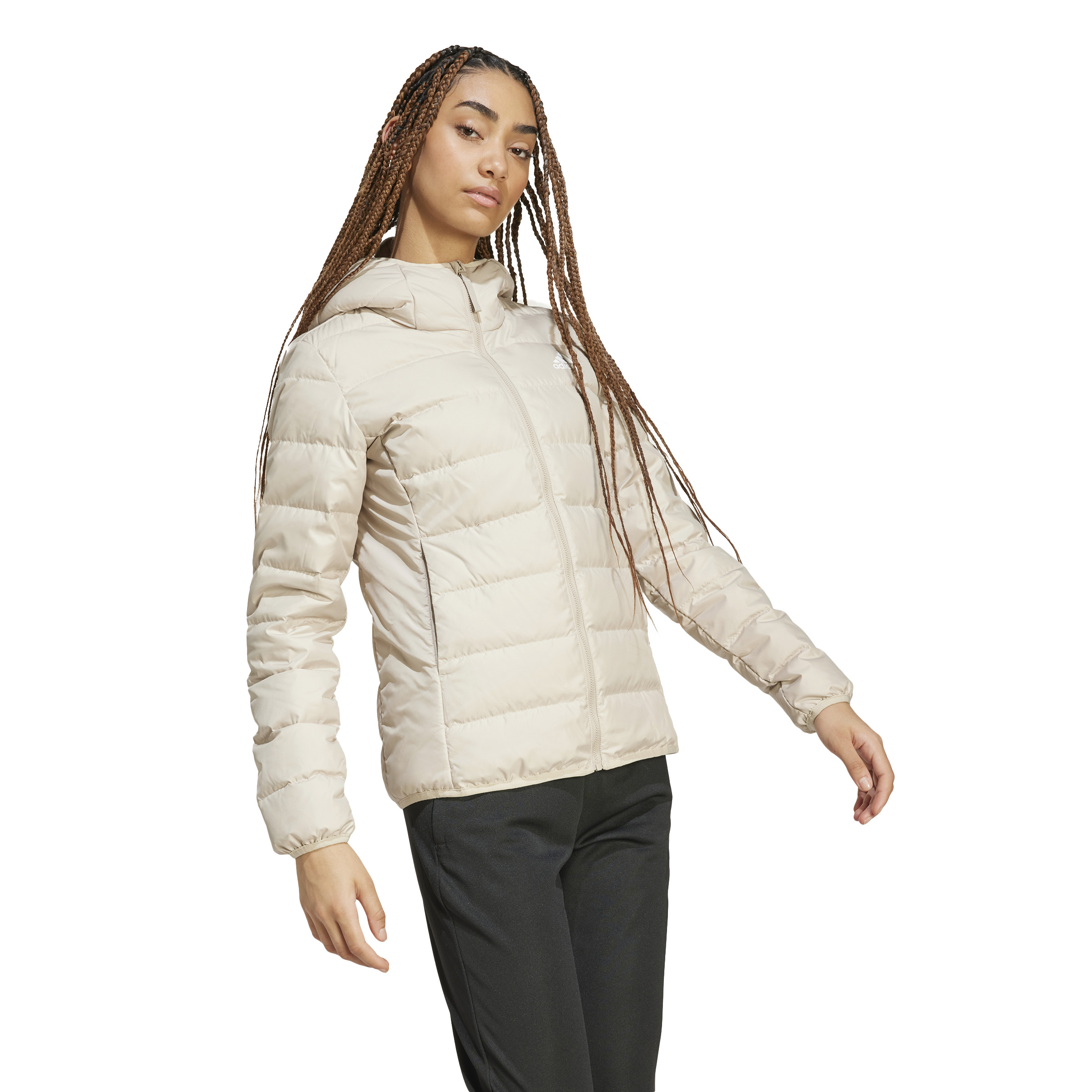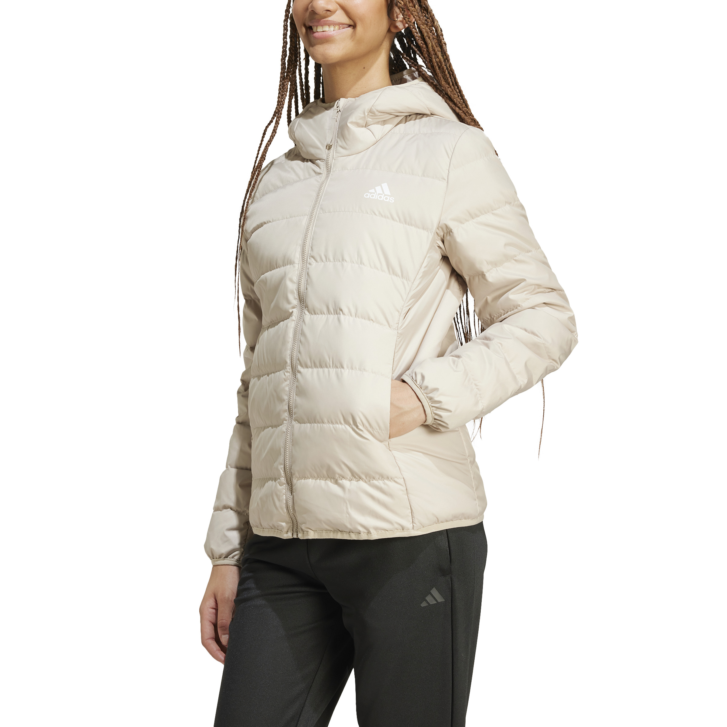 Adidas Essentials Light Down Bej Kadın Mont, yalın ve şık tasarımıyla her kombine uyum sağlar. Kuş tüyü dolgulu yapısı sayesinde hafif ama sıcak tutan bu kadın mont, PFC içermeyen su tutmaz yüzeyi ve elastik kapüşonuyla rüzgarlı havalarda ekstra koruma sunar. Yan dikişlerdeki gizli cepler sayesinde telefon ve anahtar gibi eşyalarını güvenle taşıyabilir, açık havada konforlu ve stil sahibi kalabilirsin. Bu mont, belirli oranda geri dönüştürülmüş malzemelerle üretilmiş çevre dostu bir üründür.