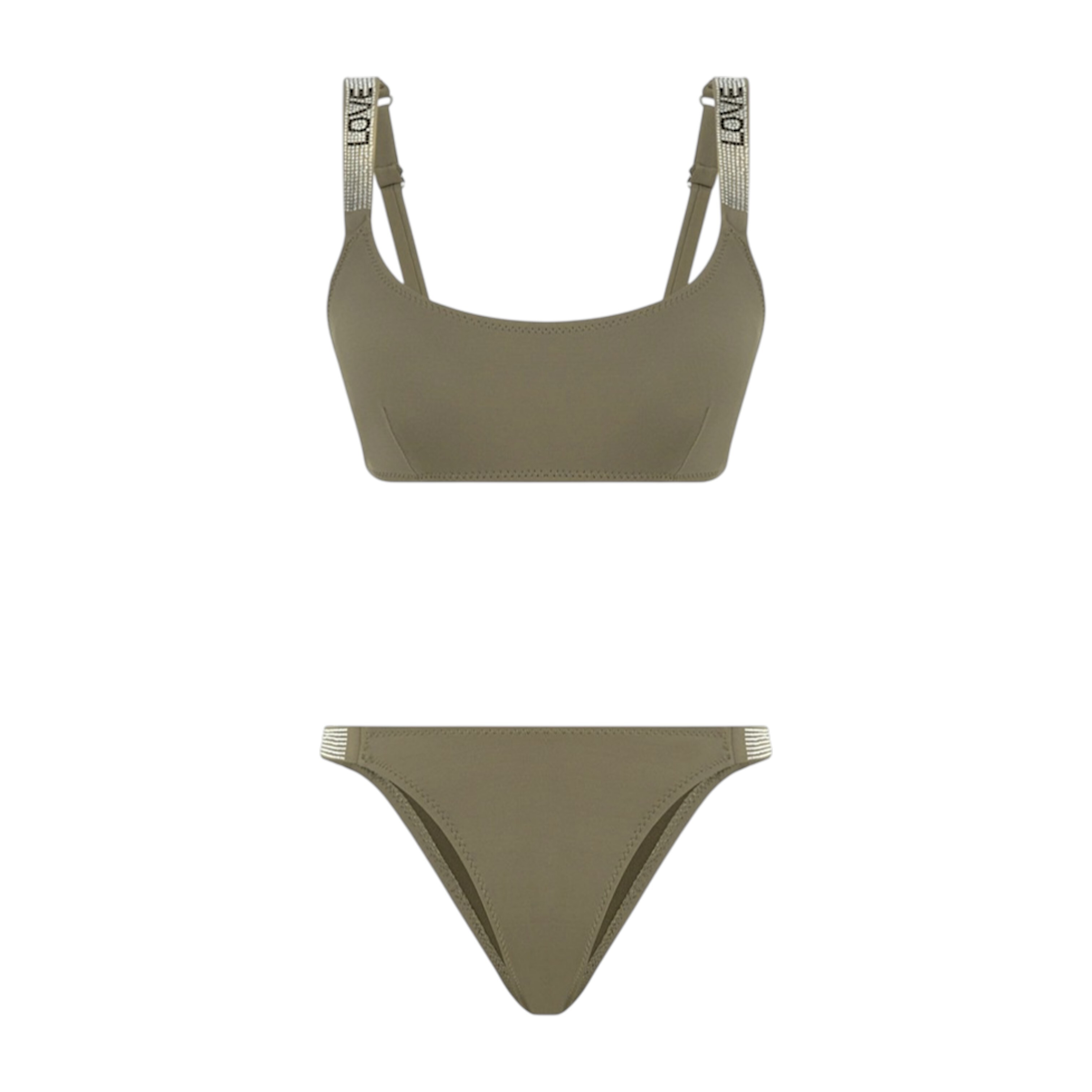 Bonesta Love kahverengi kadın bikini, taş baskı detaylarıyla ışıltılı bir şıklık sunar. Şık tasarımı ve vücuda oturan kesimiyle sahilde göz kamaştırmak isteyen kadınlar için idealdir. Kaliteli kumaşıyla hem rahat hem de dikkat çekici bir plaj deneyimi yaşatır.