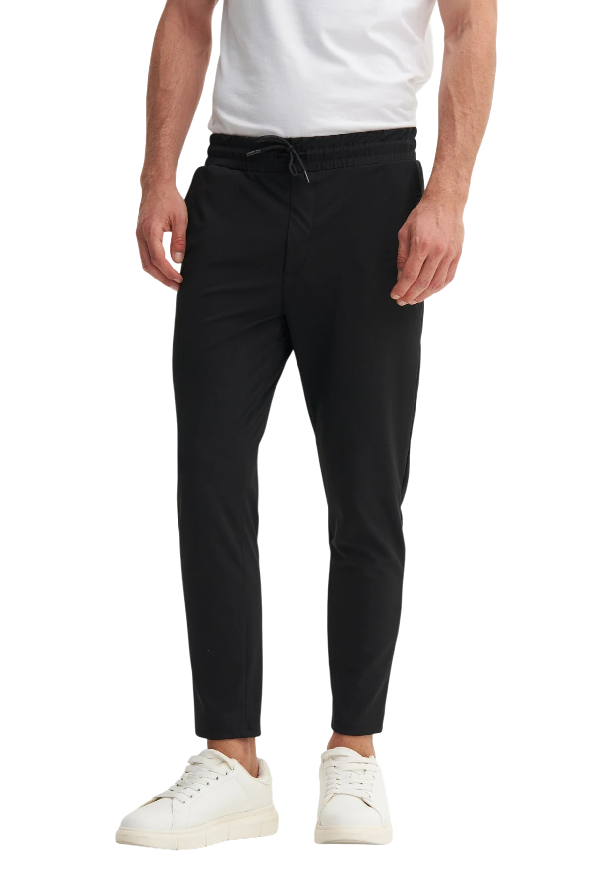 Elastik bel ve bilek yapısı sayesinde hareket özgürlüğü sağlar. Yan cepler, küçük eşyalarınızı güvenle taşımanıza olanak verir. Şık siyah tasarımı ile her kombine uyum sağlar.