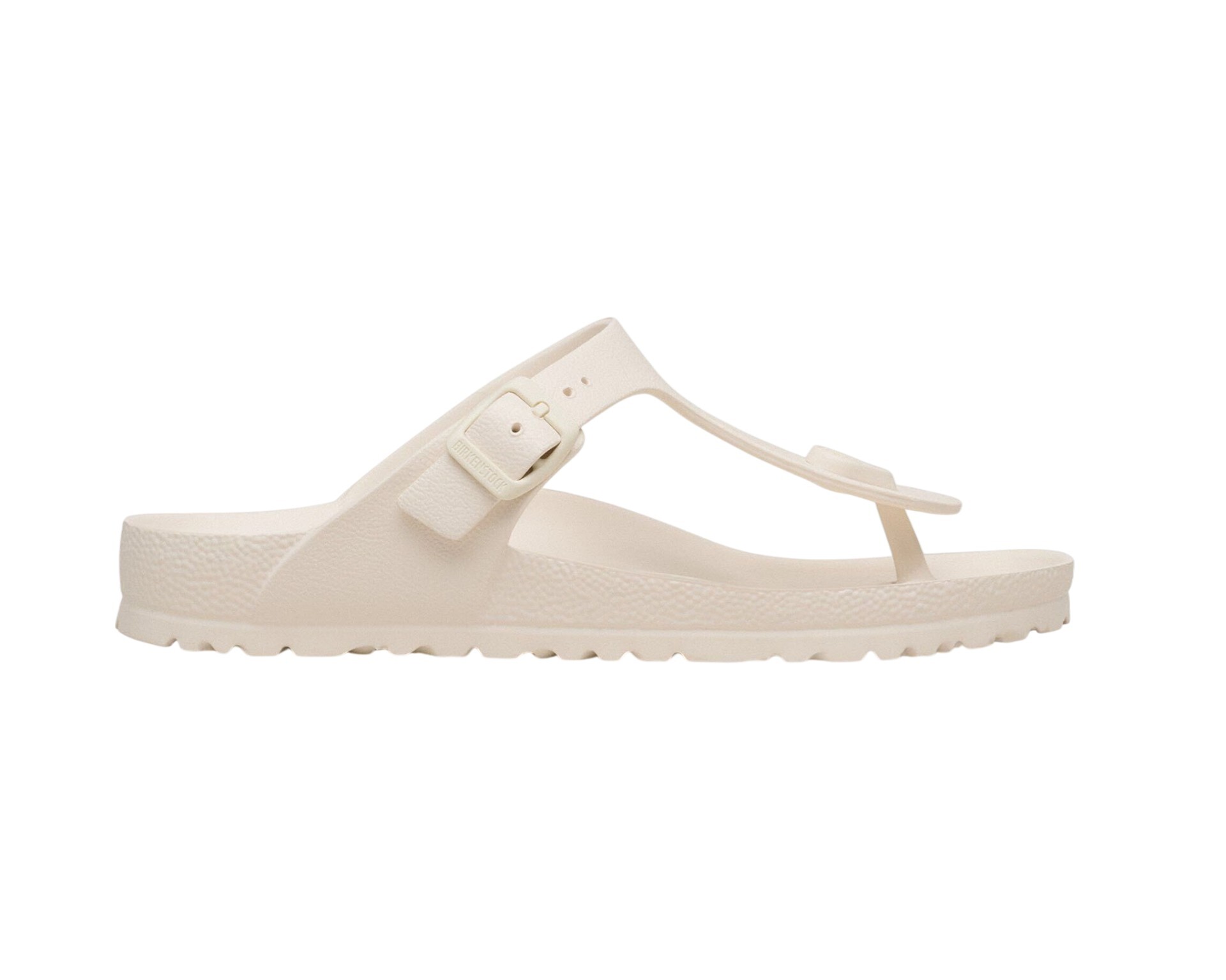 Birkenstock Gizeh Eva Beyaz Kadın Terlik, ikonik parmak arası şıklığını su geçirmez ve hafif bir formda sunuyor. Tamamen EVA malzemeden üretilen bu kadın terlik, Birkenstock'un dünyaca ünlü anatomik taban yapısını koruyarak konforu plajlara ve havuz başlarına taşıyor. Şık beyaz rengi ve kolay temizlenebilir yapısıyla yaz aylarının en pratik ve estetik tercihi olmaya aday.