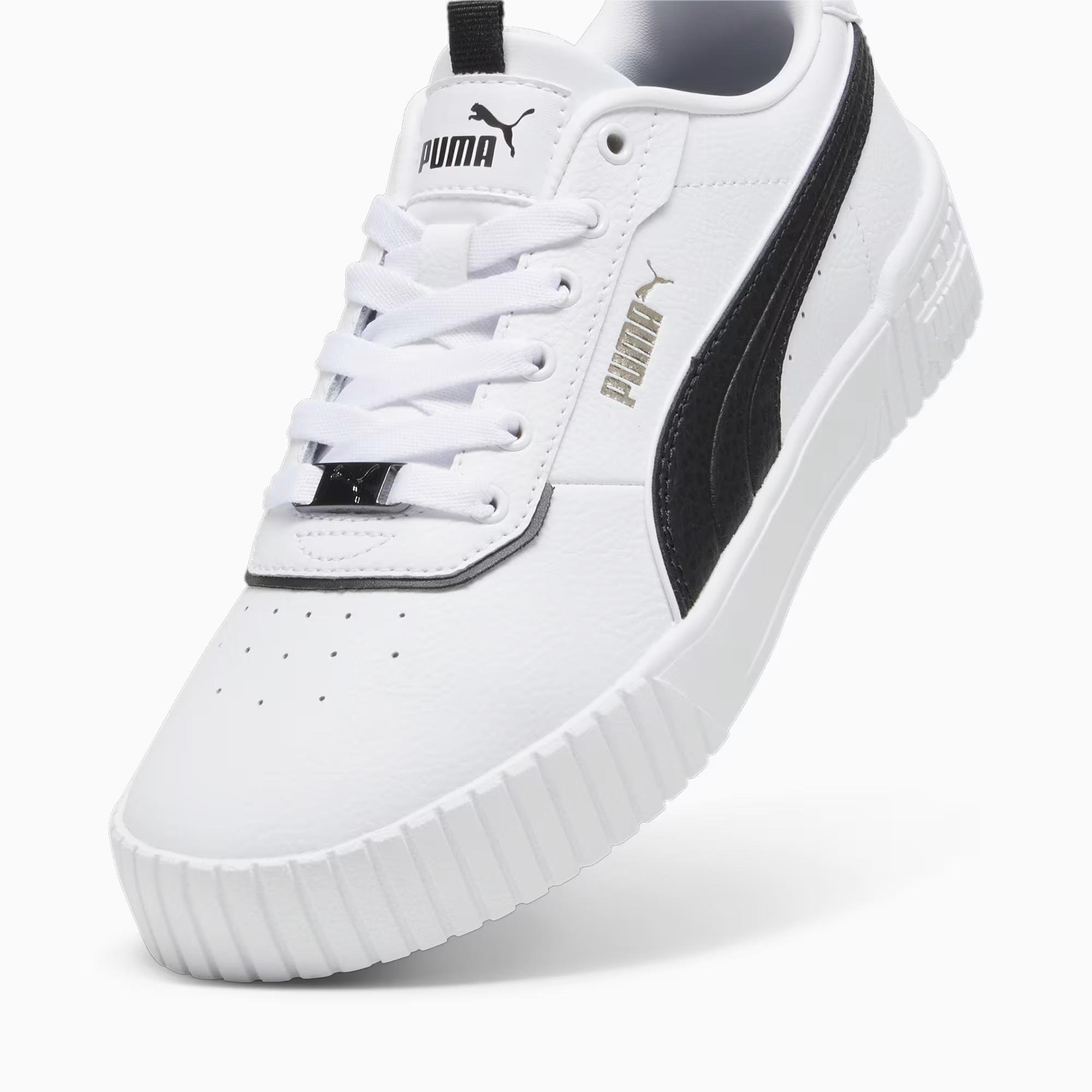 Puma Carina 2.0 Lux Beyaz-Siyah Kadın Günlük Ayakkabı, modern tasarımı ve konfor odaklı yapısıyla günlük kullanımda ideal bir deneyim sunar. Bu kadın günlük ayakkabı, delikli deri sayası sayesinde nefes alabilirlik sağlar ve şehir yaşamına uygun şık bir stil sunar. Puma Carina 2.0 Lux kadın ayakkabı, SoftFoam+ taban astarıyla gün boyu yumuşak yastıklama sağlayarak rahatlığı artırır. EVA ve TPU orta taban yapısı darbe emilimini güçlendirirken yan kenarlardaki PUMA Formstrip detayı modele sportif bir görünüm kazandırır.