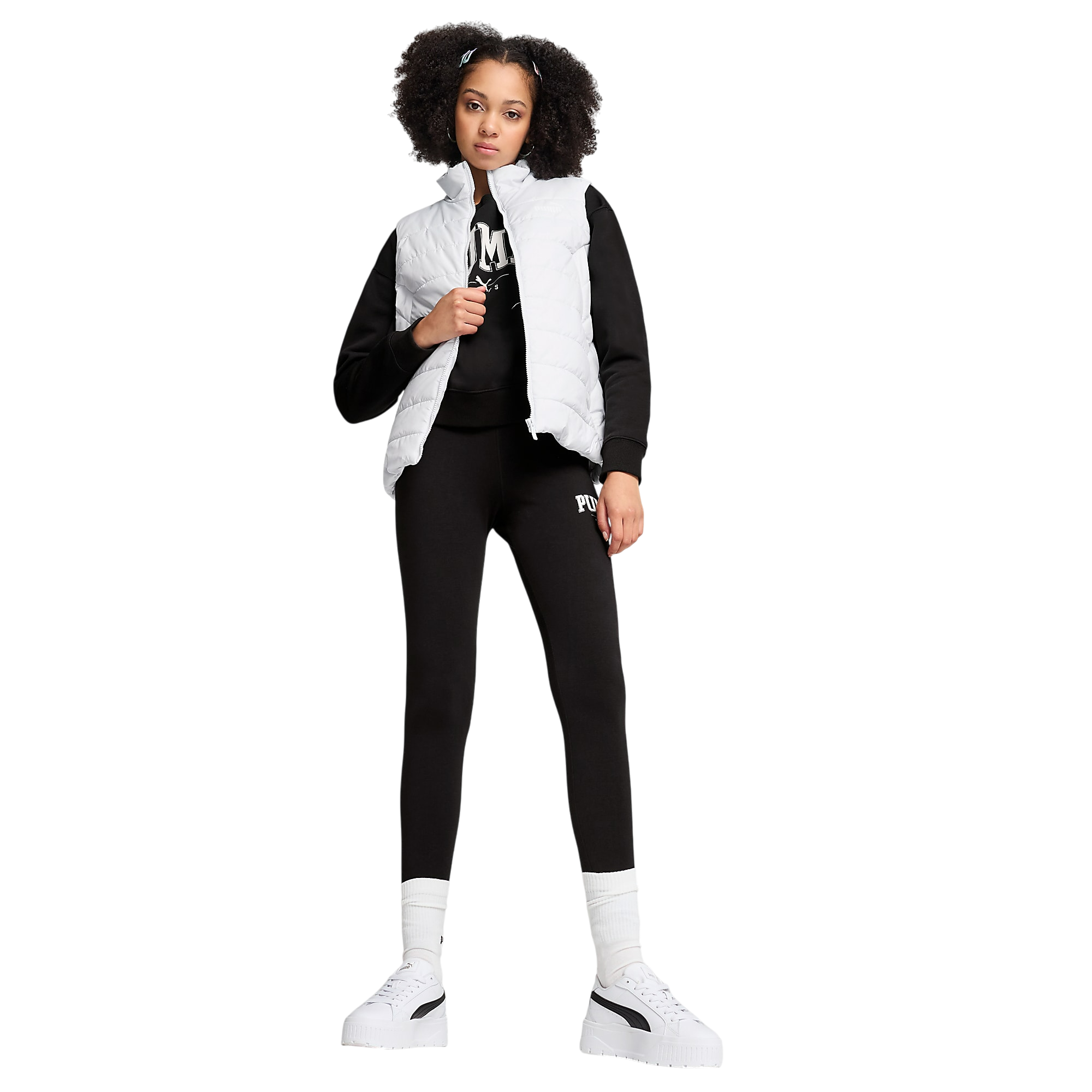 Puma Essentials Padded Vest Gri kadın yelek, şıklığı ve işlevselliği bir arada sunar. Puma kadın yelek, en az %20 geri dönüştürülmüş malzemeden üretilmiş çevre dostu bir üründür. warmCELL termal yalıtım üçgenleri ile soğuk havalarda sıcak kalmanızı sağlar, windCELL teknolojisi ise rüzgara karşı dayanıklı ve nefes alabilir koruma sunar. Tam fermuar yapısı, çene korumalı fırtına kanadı ve yan paneller ile mükemmel uyum ve konfor sağlarken, dikiş detaylı fermuarlı cepler ve iç lastikli etek ucu pratik kullanım sunar. Suya karşı ultra dayanıklı kumaşı ve sol göğüste PUMA No.1 logosu ile arka kısmındaki PUMA yazısı, sportif ve modern bir görünüm kazandırır.