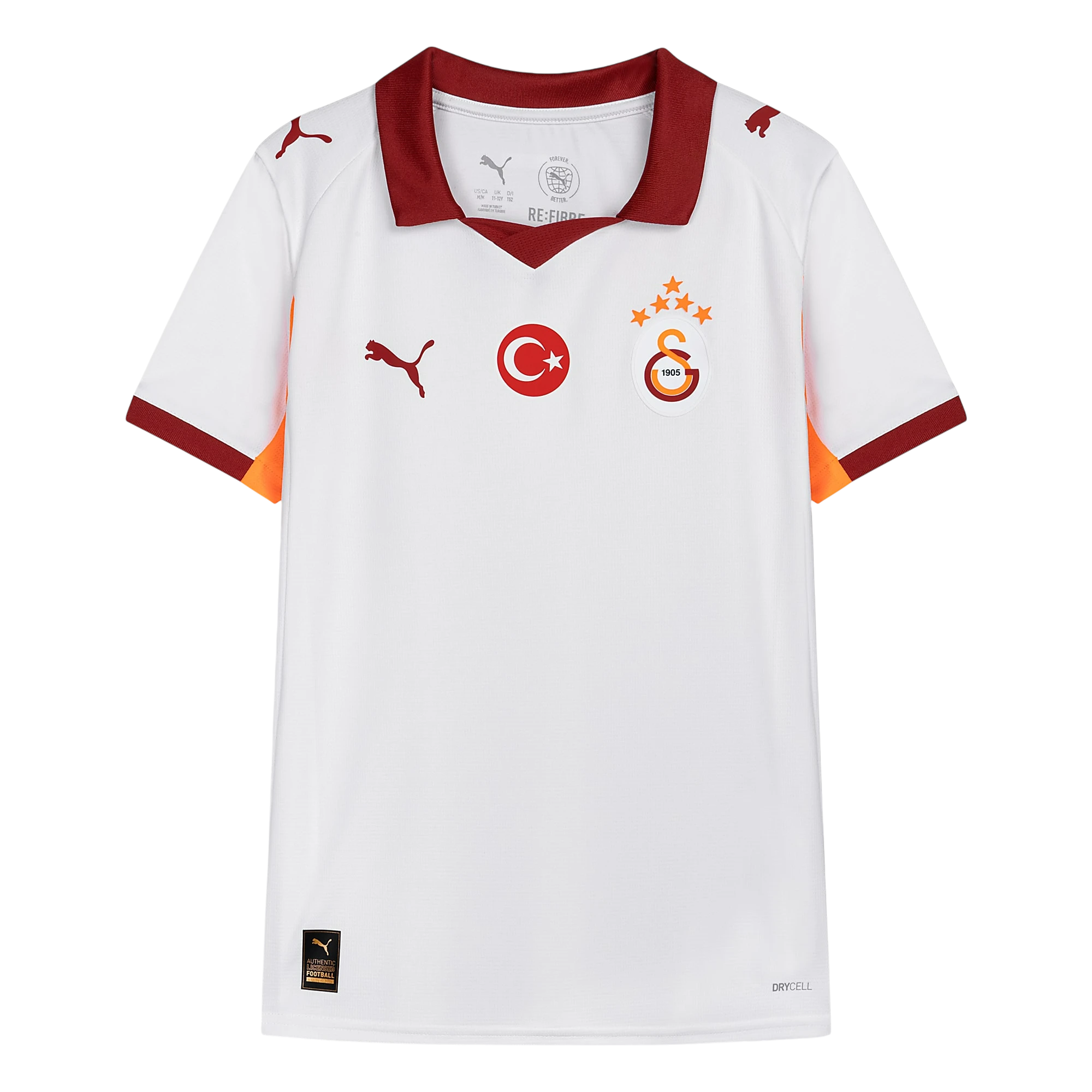 Ürün hakkında ÜRÜN HİKAYESİ Galatasaray 25/26 Deplasman forması, Galatasaray’ın 17 Mayıs 2000’de kazandığı UEFA Kupası zaferinin 25. yılına özel olarak hazırlandı. Unutulmaz UEFA kupası finalinden ilham alınan formanın ense bölümünde yer alan “23:19:32” detayı, Popescu’nun unutulmaz penaltısının ağlarla buluştuğu saat, dakika ve saniyeye işaret ediyor.Yüksek performanslı kumaştan üretilen bu ürün, sahada ve saha dışında konfor sağlar. ÖZELLİKLER & FAYDALAR dryCELL: Nemi ciltten uzaklaştırarak kuru ve rahat kalmana yardımcı olan PUMA performans teknolojisi RE:FIBRE programının bir parçası olarak, bu ürün en az %95 oranında geri dönüştürülmüş malzemeden üretilmiştir. DETAYLAR Standart kesim Çift taraflı jakarlı kumaş Yaka detaylı Kısa kollu Kulüp arması ve PUMA marka detayları PUMA Genç Stili: 8 ila 16 yaş arasındaki büyük çocuklar için önerilir