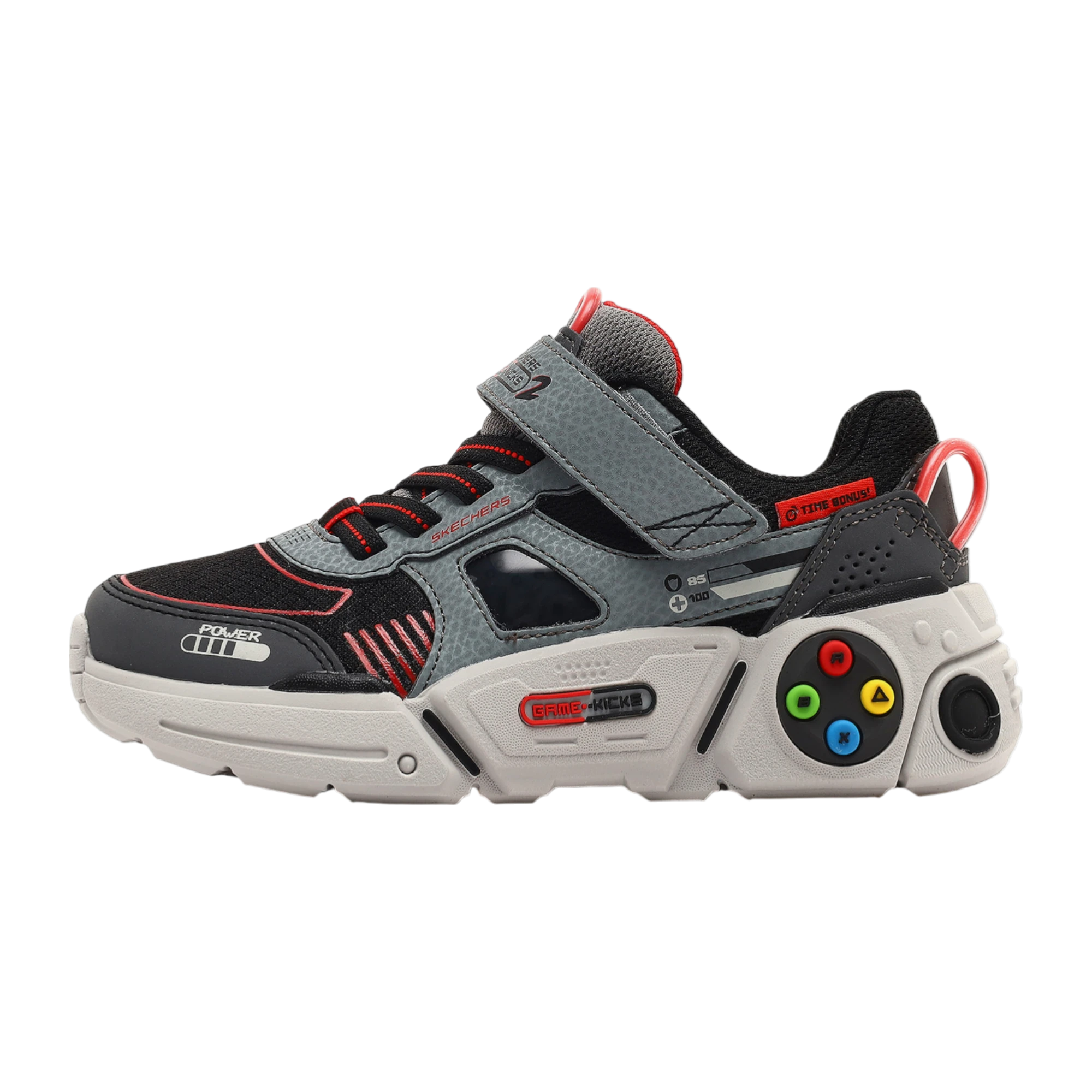 , çocuklar için konfor ve eğlenceli tasarımı bir araya getiren mükemmel bir modeldir. Yastıklı iç taban her adımda rahatlık sağlarken, dayanıklı kauçuk dış taban güvenli zemin tutuşu sunar. Adaptive Closure sistemi, cırt cırtlı kapama ve elastik bağcıklar ile kişiye özel uyum ve kolay giyip çıkarma olanağı verir. Düğme detaylı file ve sentetik üst kısım, Game Kicks® temalı oyun tasarımıyla tamamlanmıştır. Skechers Gametronix 2.0 çocuk günlük ayakkabı, oyun ve günlük aktivitelerde hem şık hem işlevsel bir kullanım sağlar.