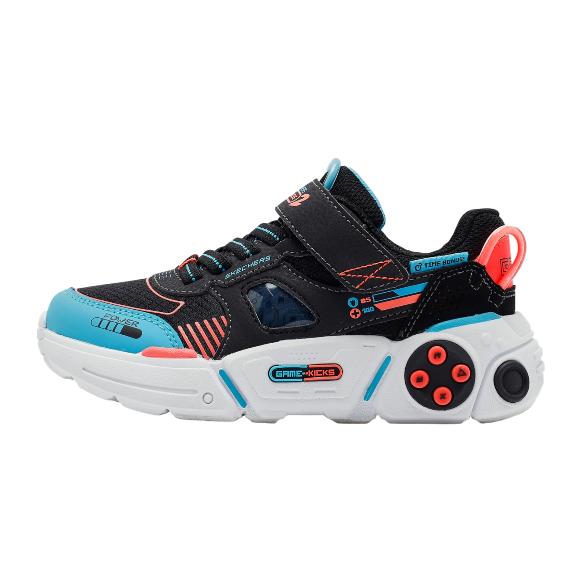 , konfor ve eğlenceli tasarımı bir araya getiren çocuklar için ideal bir modeldir. Yastıklı iç taban, her adımda rahatlık sağlarken, dayanıklı kauçuk dış taban mükemmel çekiş ve güvenli adımlar sunar. Adaptive Closure sistemi ile cırt cırtlı kapama ve elastik bağcıklar, kişiye özel uyum ve kolay giyip çıkarma olanağı verir. Game Kicks® temalı düğme detaylı file ve sentetik üst kısım ile oyun temasını şık bir şekilde yansıtır. Skechers Gametronix 2.0 çocuk günlük ayakkabı, oyun ve günlük aktiviteler için hem şık hem işlevsel bir tercihtir.
