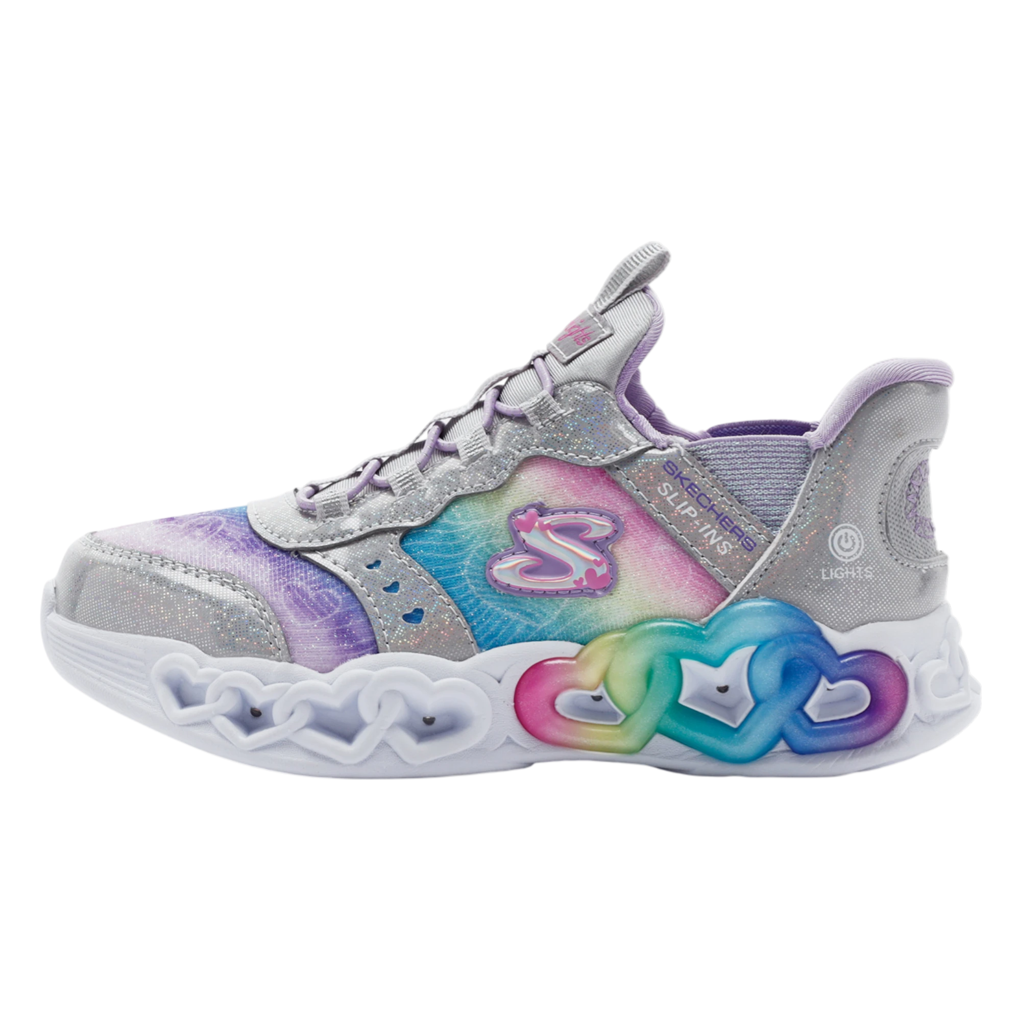 Skechers Infinite Heart Lights - Eternal Shimmer Gri Çocuk Günlük Ayakkabı, ışıklı ve eğlenceli tasarımıyla küçük sporculara hem stil hem de konfor sunar. İç tabanda kullanılan Skechers Air-Cooled Memory Foam® yastıklı ve nefes alabilir yapısı, her adımda maksimum rahatlık sağlar. Darbe emici yastıklı orta taban ve esnek dış taban, oyun ve günlük aktivitelerde güvenli adımlar atmanıza yardımcı olur. Kolay giyilebilen Skechers Hands Free Slip-ins koleksiyonunun bir üyesi olan bu model, özel Heel Pillow™ topuk yastığı ile ayağı destekler. Üst kısımda bulunan parıltılı kalp desenli file saya, her adımı daha eğlenceli ve göz alıcı hale getirir. Topuk yüksekliği 2.54 cm olup, büyük çocuk bedenlerinde ışık açma/kapama düğmesi bulunur.