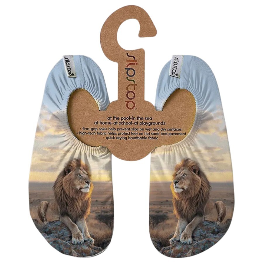 Vahşi doğanın enerjisi ayaklarda! SlipStop King Kahverengi Çocuk Deniz Ayakkabısı, özel kaymaz tabanı ve dikkat çekici desenleriyle hem havuzda hem denizde maksimum güvenlik sağlar. Hızlı kuruyan kumaşı ve tüy kadar hafif yapısıyla çocukların ayaklarını sıcak kumdan korurken onlara sınırsız hareket özgürlüğü sunar.