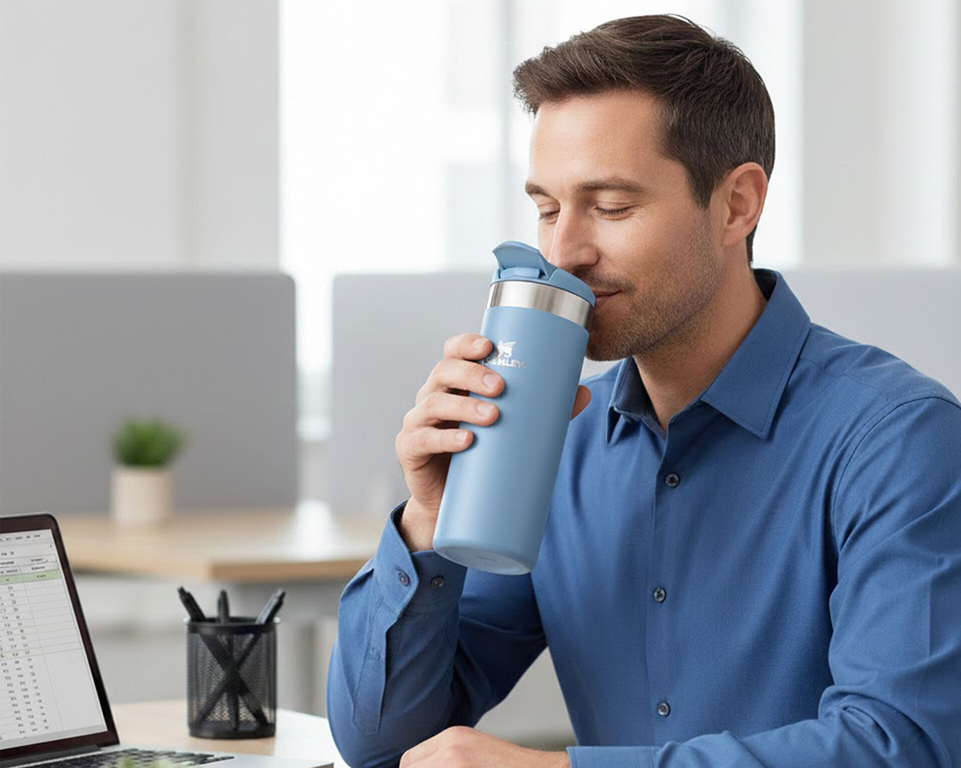Stanley The AeroLight Transit Mug 0.47L / 16oz Mavi Unisex Termos, daha yüksek kapasitesi ve ultra hafif yapısıyla gün boyu içecek konforu sunan modern bir unisex termos modelidir. Stanley termos teknolojisiyle geliştirilen bu termos bardak, özel AeroLight hafifliği sayesinde yalnızca 240 gram ağırlığındadır ve taşıması son derece kolaydır. Çift katmanlı vakum izolasyonu, içeceklerin sıcaklığını uzun süre korurken kilitlenebilir içim kapağı sızdırmaz ve güvenli kullanım sağlar. Araba bardaklıklarına uyumlu tasarımıyla ofis, şehir hayatı ve seyahatler için ideal bir Stanley unisex termos seçeneğidir.